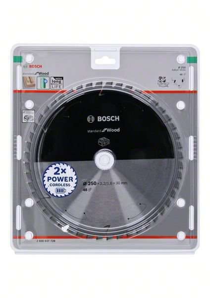 Hjem / Maskintilbehør & forbruksvarer / Skjæreverktøy / Sirkelsagblad / Bosch Standard for Wood-sirkelsagblad for batteridrevne sager 250x2,2/1,6x30 T48