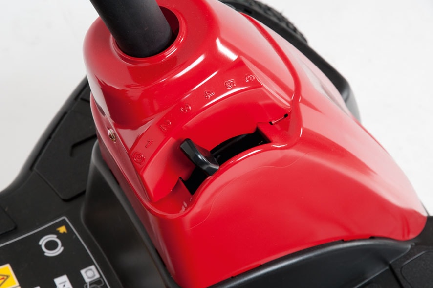 MTD:s patenterade drivsystem Transmatic är steglöst. Det innebär att du med den vänstra foten kan reglera hastigheten från stillastående till full fart. Vill du minska hastigheten, tryck ner pedalen lite grann. Vill du hålla en konstant hastighet ställ växelreglaget i lämplig växel. Nu håller maskinen detta läge som hastighet. Enkelt och smidigt!