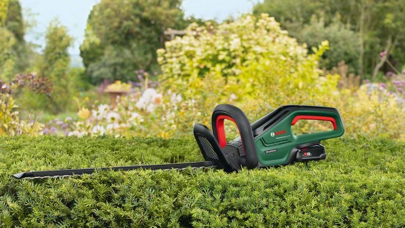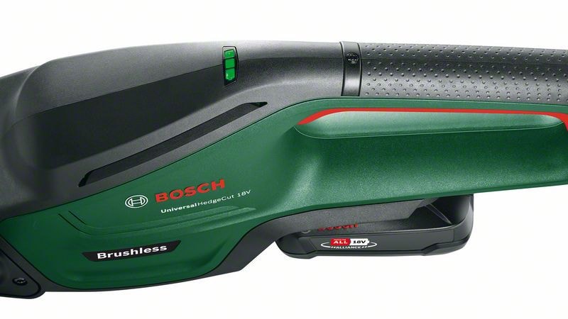 Kraftfull og utholdende: Boschs batteridrevne 18V UniversalHedgeCut 18V-55 med børsteløs motor har høy ytelse og ekstra lang levetid. Den har en lettvektsdesign som reduserer belastningen, slik at mange timer med hagearbeid blir en fornøyelse. Hekksaksen klipper mellomstore hekker som nåletrær, liguster, laurbærtre og bøk med opptil 20 mm tykke greiner uten at den blokkeres, takket være Boschs patenterte Anti-Blocking System som gir mulighet til kontinuerlig klipping. En batteritid på opptil 75 minutter og en indikator for batterinivå som komfortabelt viser batteristatusen under arbeidet minimerer faren for at man uventet går tom for strøm. De laserskårne, diamantslipte knivene sørger for nøyaktige kutt, for førsteklasses resultater og lang levetid. Verktøyet hører med i POWER FOR ALL ALLIANCE. Ett batteri kan brukes på mange forskjellige verktøy av ulike merker.